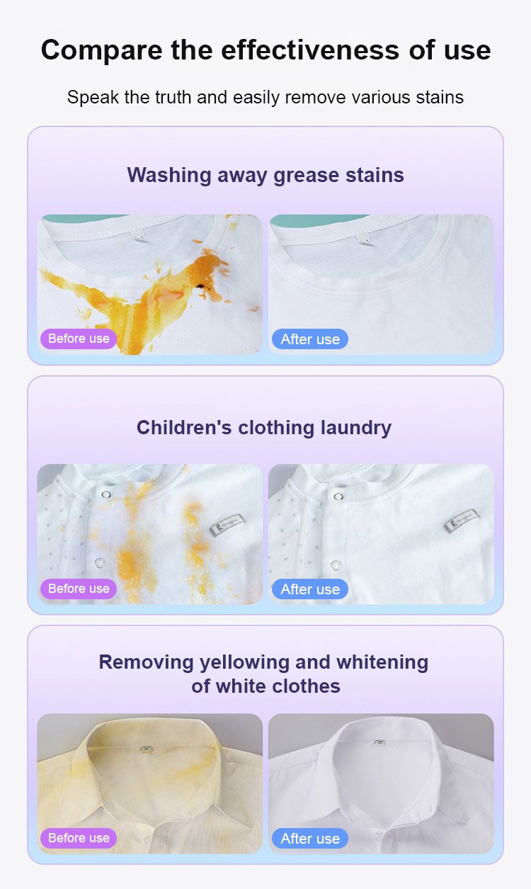 Tired of juggling multiple laundry products? The 8-in-1 Colour Bleach Laundry Detergent is your all-in-one laundry hero! 🦸♂️ Designed to tackle the toughest stains, protect fabric colors, and leave your clothes fresh, bright, and unbelievably clean. Whether it’s mud, sweat, oil, or food spills – this powerful formula does it all in one wash.
